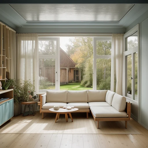 High resolution photography interior design, dreamy sunken living room conversation pit, wooden floor, small windows opening onto the garden, bauhaus furniture and decoration, high ceiling, beige blue salmon pastel palette, interior design magazine, cozy atmosphere; 8k, intricate detail, photorealistic, realistic light, wide angle, kinkfolk photography, A+D architecture