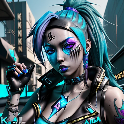 League of legends KDA Akali rapper and singer, cyberpunk, outdoor, street, ice blue, hyperrealism, photorealistic, 8k, unreal engine, 3d render --ar 9:16 --niji 5 --style expressive --s 400