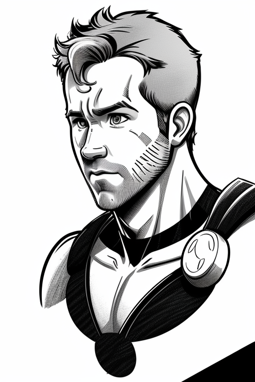 DreamShaper prompt: Ryan Reynolds (2d, pencil sketch, crisp edges, bol...