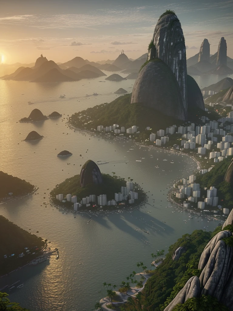 Photo of a ultra realistic Rio de Janeiro, dramatic light, pale sunrise, cinematic lighting, battered, low angle, trending on artstation, 4k, hyper realistic, focused, extreme details, unreal engine 5, cinematic, masterpiece, art by studio ghibli, intricate artwork by john william turner