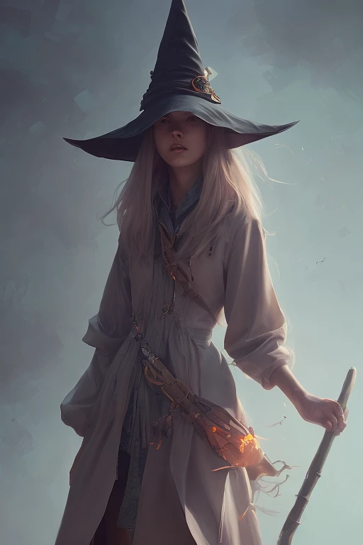 rugged girl witch wearing magic school uniform, large wide - brimmed witch hat, cinematic, elaborate, elegant, masterpiece, illustration, digital painting, concept art, trending on artstation, pixiv, art by ruan jia and hong soonsang and wlop and artgerm and greg rutkowski and alphonse mucha