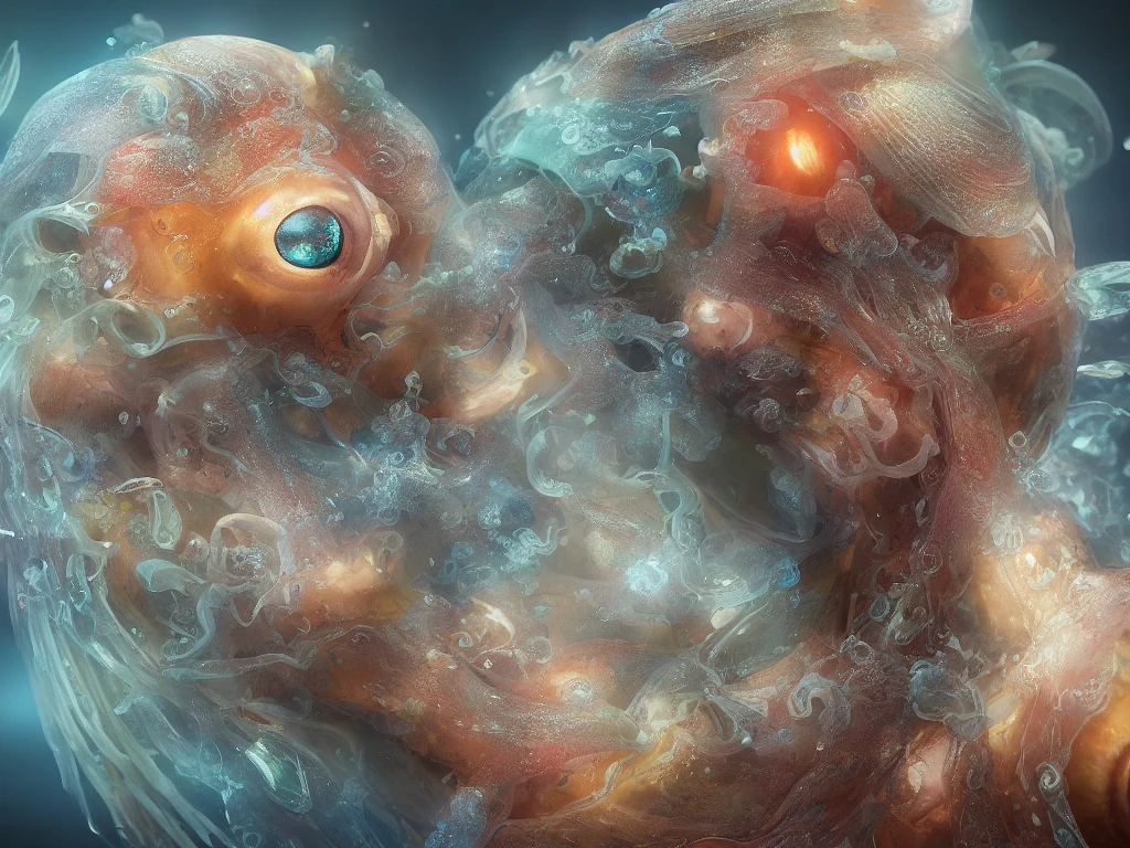Goddess close-up portrait ribcagel. jellyfish phoenix head, nautilus, orchid, skull, betta fish, bioluminiscent creatures, intricate artwork . octane render, trending on artstation, t symmetrical artwork. cinematic, hyper realism, high detail, octane render, 8k