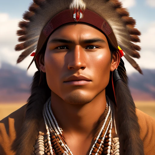 young handsome native american man, perfect symmetrical face, wild west environment, Montana landscape, photorealistic, ultra realistic, elegant, intricate, highly detailed, depth of field, front view, 8k, shot on 65mm, 22 megapixels