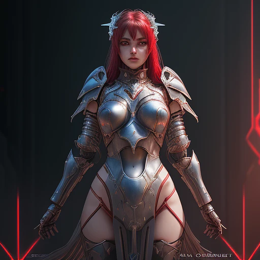 <lora:openjourneyLora_v1:1> | goddess warrior knight| sci-fi| beautiful futuristic space armor| decadent| divine| celestial| ((epic pose) )| ultra-realistic| battle worn| red| sensual| intricate | elegant | realistic | hyperrealistic | cinematic | highly detailed