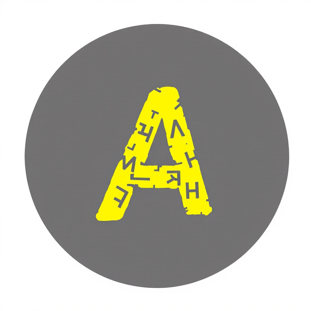 YELLOW LETTERS A. S. ARE EVENLY DISTRIBUTED IN A BLACK CIRCLE.