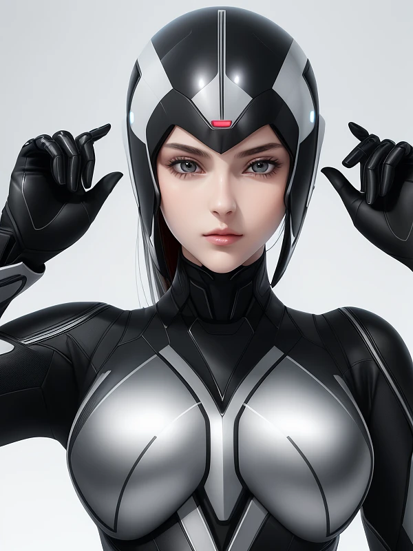 Beautiful young girl. ((In full growth) ). Slender body. Amazing face. Symmetrical eyes. Symmetrical suit. Fantastic eyes. Detailed eyes. Detailed face. Minimalistic futuristic cyber suit. Detailed suit. Realistic. High quality picture. Detailed picture. Masterpiece. ArtStation. A high resolution.