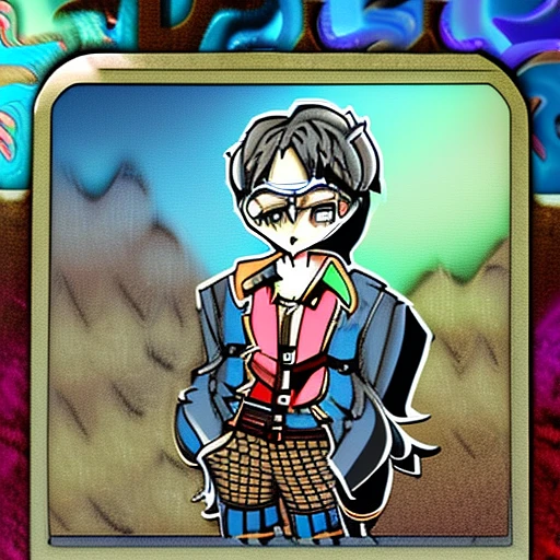 anime steampunk backpacker, Visual Novel: Dry-Erase Marker: Golden Hour, Analogous-Colors, High Contrast, Technicolor, 2D, Evil