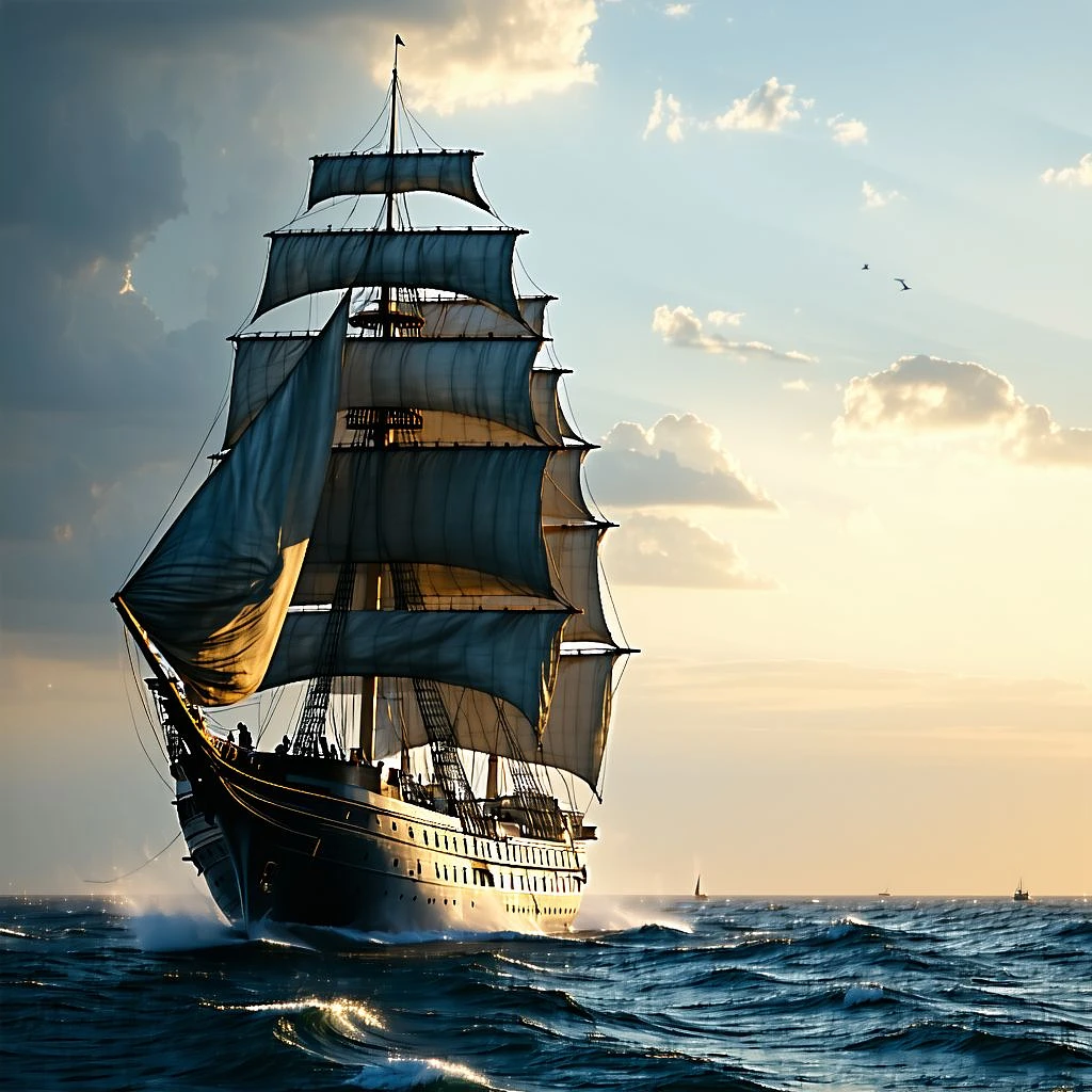 Photo of a ultra realistic sailing ship, dramatic light, pale sunrise, cinematic lighting, battered, low angle, trending on artstation, 4k, hyper realistic, focused, extreme details, unreal engine 5, cinematic, masterpiece, art by studio ghibli, intricate artwork by john william turner