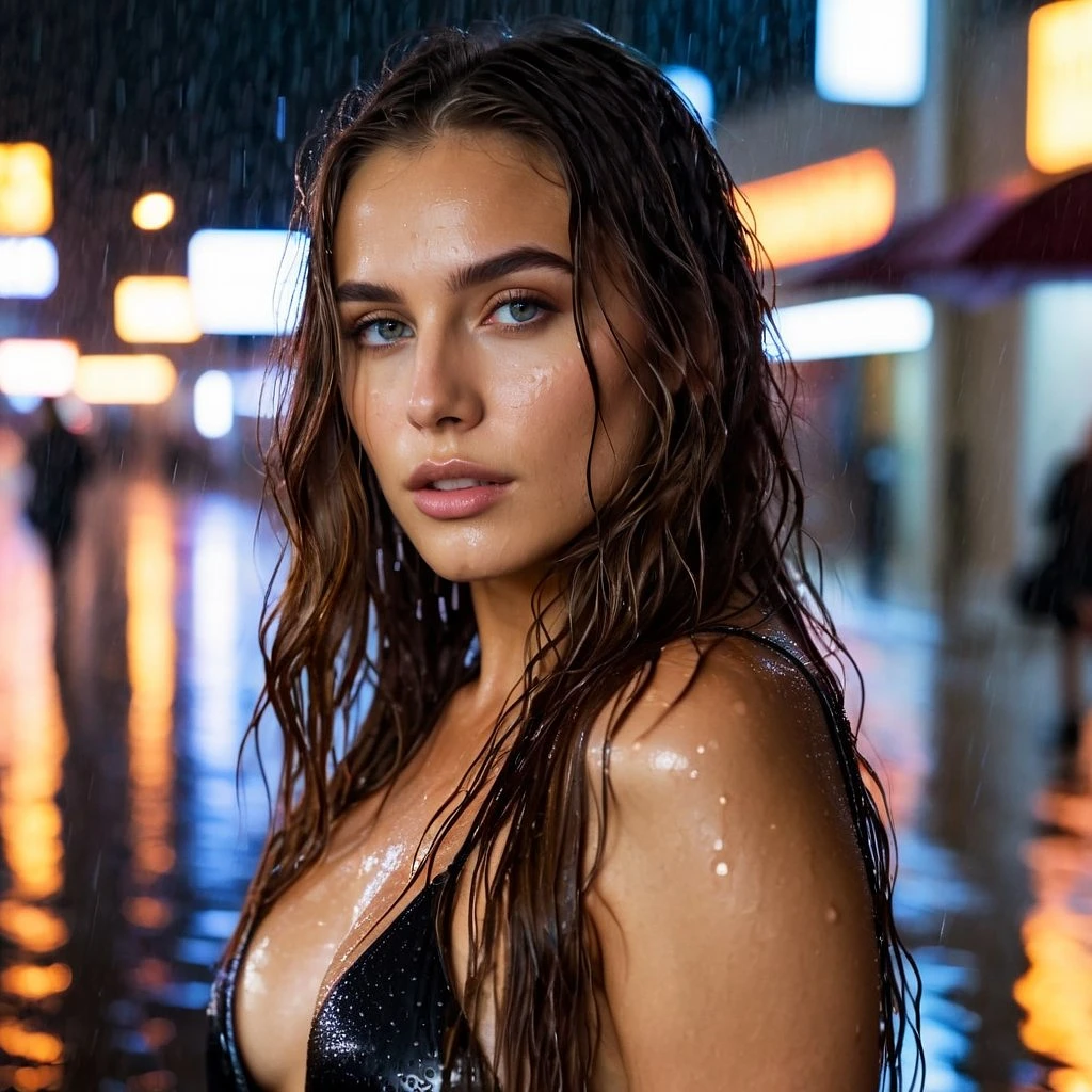 photo of a sexy woman, neon lights, late at night, in the ((rain) ), very long brown wet hair, cinematic, shallow depth of field, extremely detailed, (Masterpiece:1.3) , (best quality:1.3) , <lora:add_detail:0.4> <lora:epi_noiseoffset2:0.4> <lora:hairdetailer:0.6> <lora:more_details:0.3> <lora:add-detail-xl:1.2> <lora:DetailedEyes_V3:1.2> <lora:sd_xl_offset_example-lora_1.0:1.2> , (natural skin texture, hyperrealism, soft light, muted colors) , background