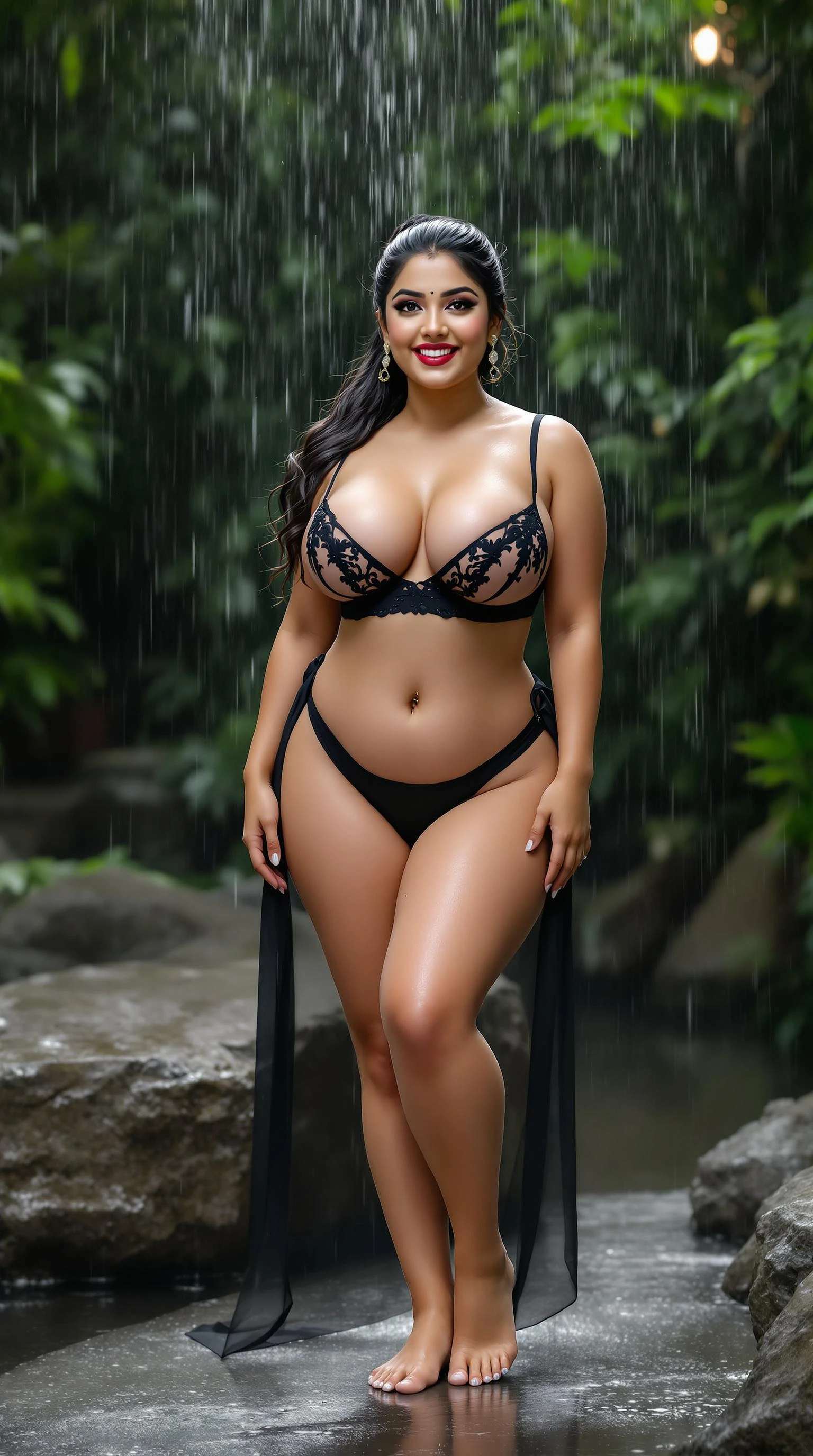 front view huge curvy body naked exposed to slim see through bra and panty looking at viewers smiling on her beautiful face sexy teeth, hugging her sexy boss at office, full body huge curved shape hip butt ass cleavage thick creamy skin detail of a 25 year old plus size sexy hourglass figured Telegu Indian anchor Shriya Ghoshal boobs standing on a large rock spreading her soft legs getting shower her wet body with clothes getting shower by a garden and office room with her boss has rain sweats droplets on her body and face wet looking up with alluring sexy teeth laughing smile on her black big eyes with black mascara embroidered bright dark Royal BLACK color transparent chiffon body tight bikini bra and front view boobs strapless deep neck huge tits cleavage tiny bra exposed curve breasts, very big breasts boobs ponytail hair athletic woman, view from behind, full body photograph, looking at viewer, slight pout, she has black and brown-maroon mixed blonde hair,