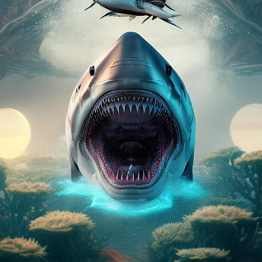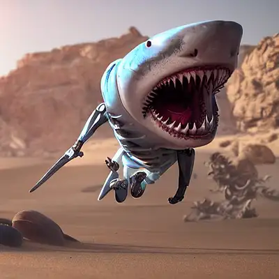 robotic white shark running in the desert with guns and flowers, skull, bioluminiscent creatures, intricate artwork . octane render, trending on artstation, t symmetrical artwork. cinematic, hyper realism, high detail, octane render, 8k, hyperealistic