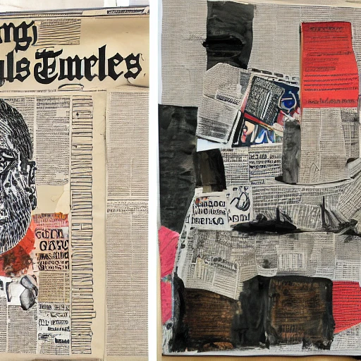 expressive gouache and ink illustration, editorial illustration! content for political opinion article, new york times illustration, cluttered maximalist, rauchenburg, impasto paint, bronze parts, dark tones, collage, editorial illustration award! ! contrast between large photocopy of face close up and smaller collage pieces with ripped headlines from newspapers and books