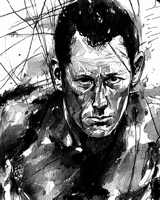 Drawing of lance Armstrong, black and white, concept art, sumi - e style, artstation, trending, highly detailed, smooth, focus, art by yoji shinkawa