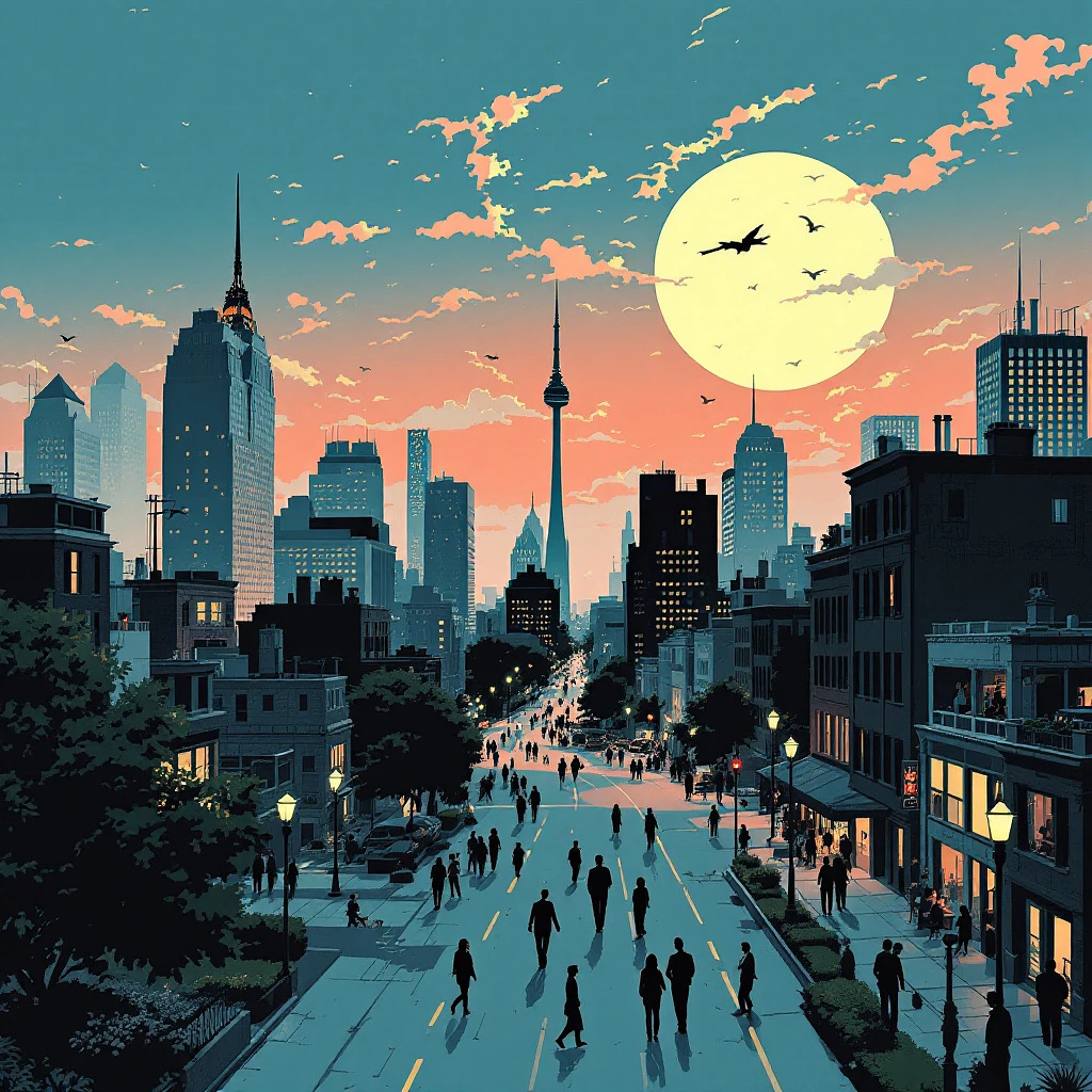 An illustration of nightlife in new york inspired precise visuals blending details with surrealism with a visual subtle sense of humor balance realism with whimsical absurdity , wit and elegance in the style of guy billout