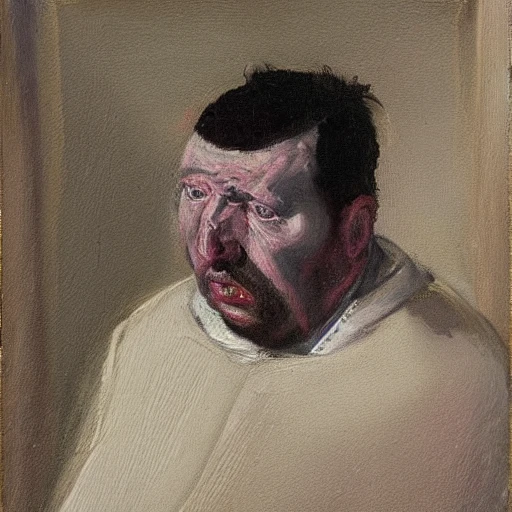 an oil painting, of a man in pain, in the style of Francis Bacon Study after Velázquez's Portrait of Pope Innocent X