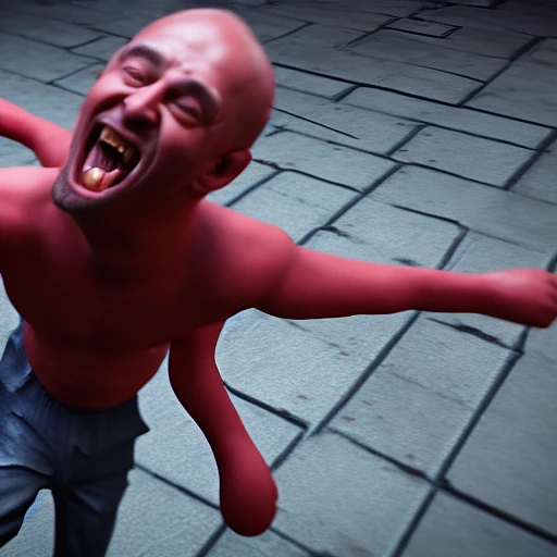 A crazy wobbly man, 4k, hyper realistic, focused, extreme details, unreal engine 5, cinematic, masterpiece, 3D