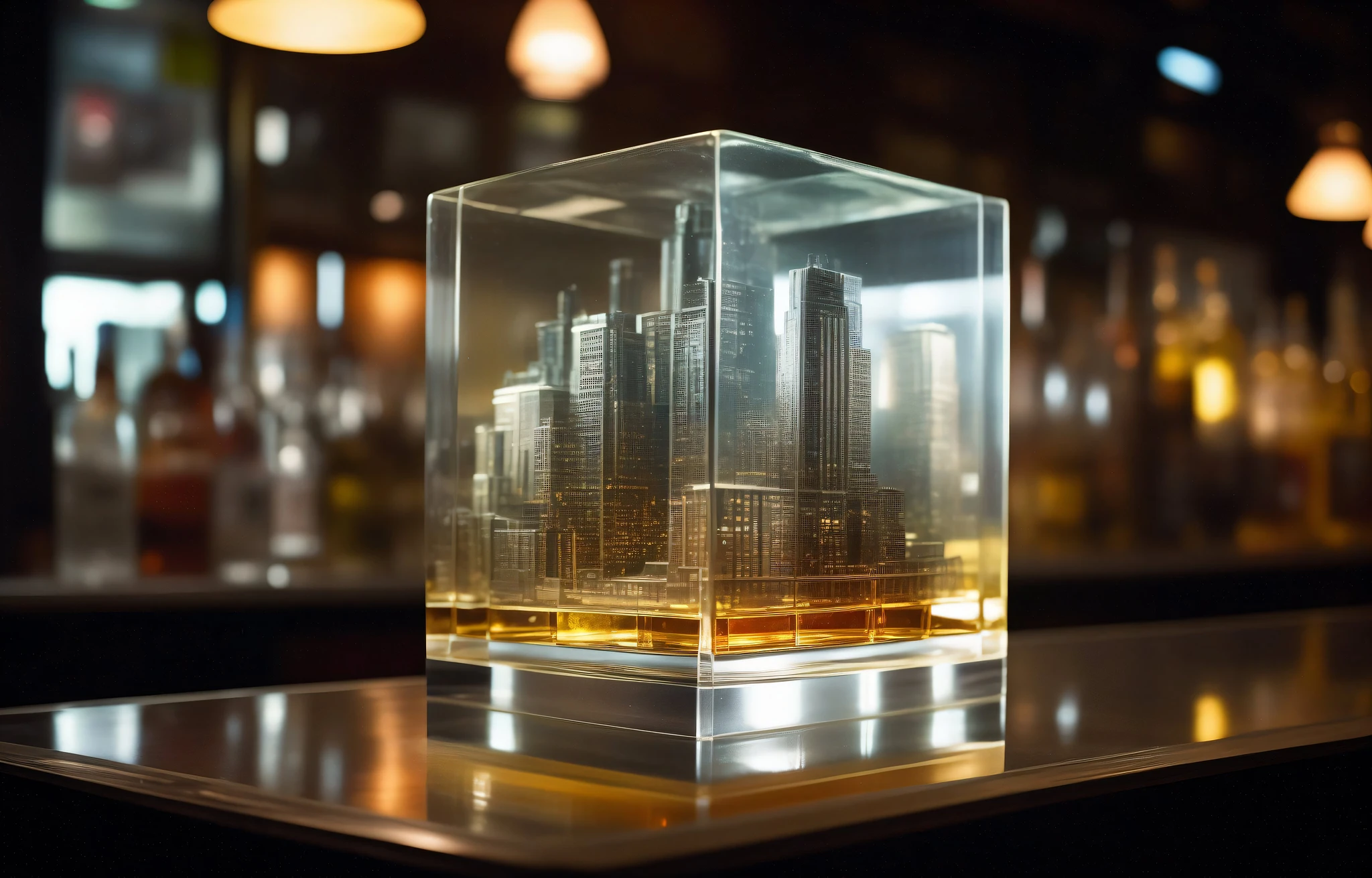 Testing Lighting and refraction, looks like a little bit of whisky in the cube...