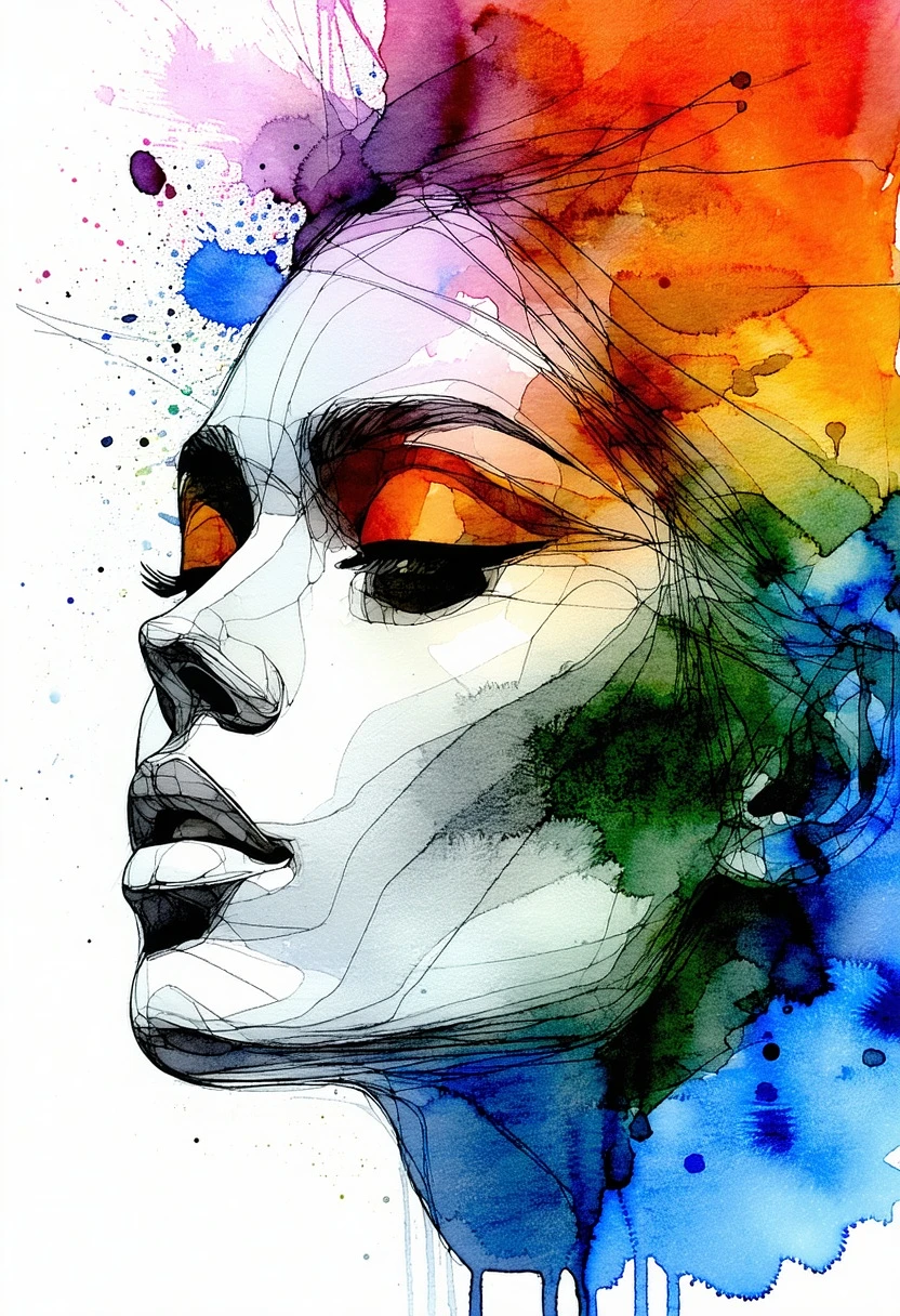 color drawing of a woman's face, emotional --chaos 75 --ar 1:2 --profile rsy6uq9 --stylize 750