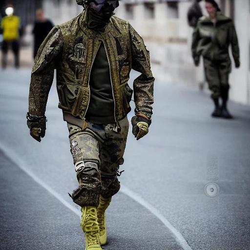 military look and clothes, we can see them from feet to head, highly detailed and intricate, golden ratio, beautiful bright colors, hypermaximalist, futuristic, cyberpunk setting, luxury, elite, cinematic, techwear fashion, Errolson Hugh, Sacai, Nike ACG, Yohji Yamamoto, Y3, ACRNYM, matte painting –w 2176 –h 3840 –iw 1
