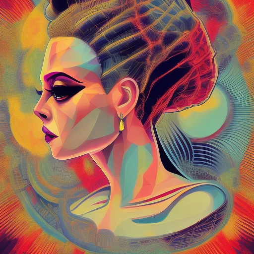 geometric abstract portrait of Bride of Frankenstein, bright vibrant colorful, shepard fairey --aspect 3:6