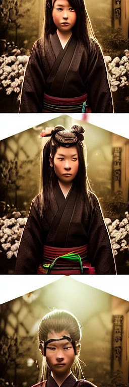 Young Samurai with long black hair and ponytail, wearing samurai armor, standing in a Japanese temple, cherry blossom petals falling, illuminated lanterns, glowing sunrise, tranquil lighting, ethereal lighting, delicate shadows, ((beautiful detailed eyes, symmetrical eyes) , dramatic lighting, (photorealism:1. 5) , (photorealistic:1. 4) , (8k, RAW photo, masterpiece) , High detail RAW color photo, a professional photo, realistic, (highest quality) , (best shadow) , (best illustration) , ultra high resolution, highly detailed CG unified 8K wallpapers, physics-based rendering, photo, realistic, realism, high contrast, hyperrealism, photography, f1. 6 lens, rich colors, hyper-realistic lifelike texture, cinestill 800)