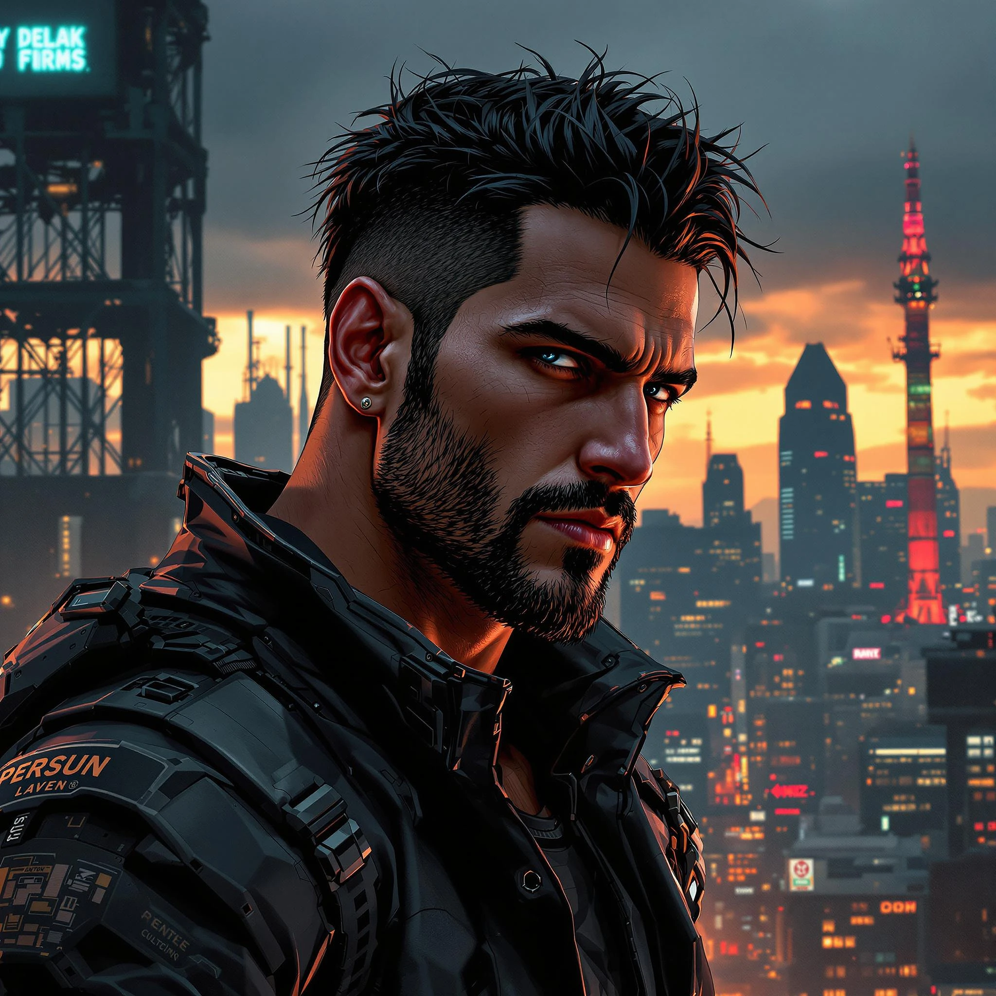 Handsome Javier. good looking cyberpunk fitness dude. attractive face. Realistic Proportions. Concept art by James Gurney and Laurie Greasley. Moody Industrial skyline. ArtstationHQ. Creative character design for cyberpunk 2077.