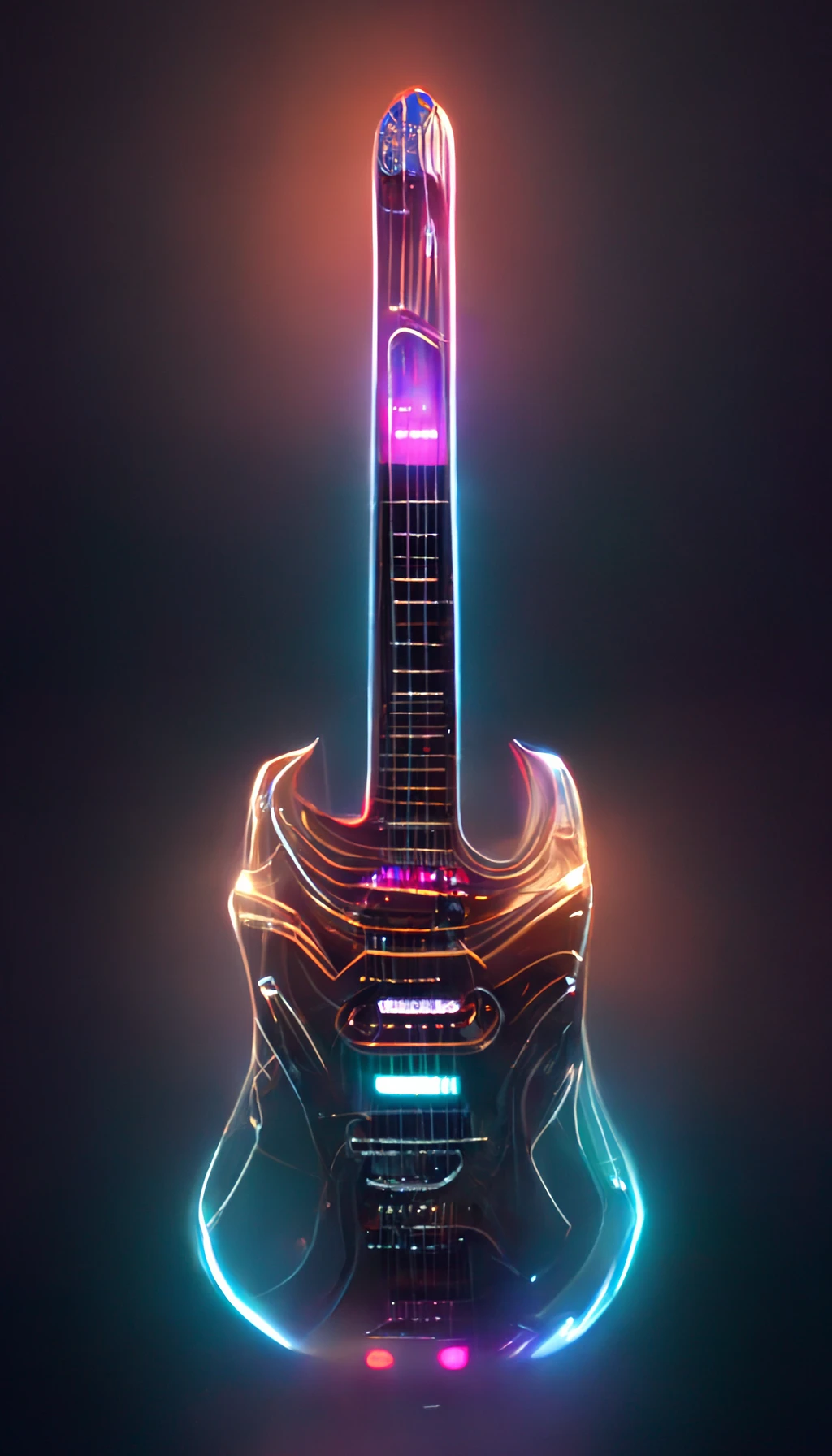 a full page concept design of a futuristic electric guitar, organic design lines, LEDs, highly detailed, 4k, hyper reaslitic, unreal engine render --ar 9:16 --uplight