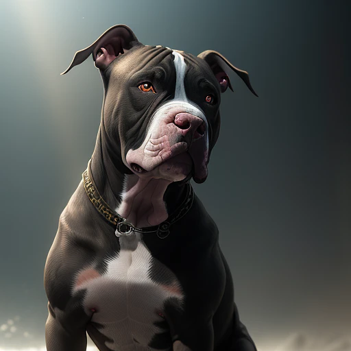 Photo of a ultra realistic , xl American bullystyle pitbull puppy cropped ears, cynematic light, futuristic, epic fantasy, 8k --ar 2:3 cinematic lighting, battered, low angle, trending on artstation, 4k, hyper realistic, focused, extreme details, unreal engine 5, cinematic, masterpiece, art by studio ghibli, intricate artwork by john william turner