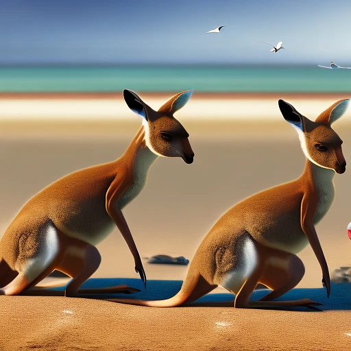 a kangaroo race on the beach, physics-based rendering, 8k, Bokeh, highest quality, ultra high resolution, professional, 8k, highly detailed