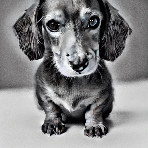 highly detailed, hyper realistic sketch of a long haired dachshund cute+ adorable puppy, looking inquisitive