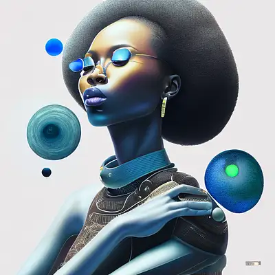 cool african girl, eyes closed, eyes closed, eyes closed, particles, futuristic android, 80 mm hyperdetailed portrait, aesthetic octane render, aesthetic octane render, aesthetic octane render, smooth, yellow and blue asymmetric makeup, techwear, streetwear, nose piercing, cyberpunk style outfit, amedeo modigliani, gustav klimt, wassily kandinsky, chiaroscuro, dramatic atmosphere, bokeh, cinematic lighting through volume, magic neon and dark blue city --testp --upbeta