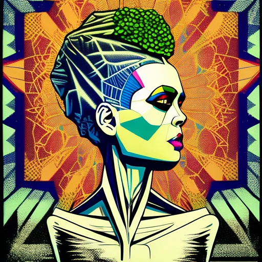 geometric abstract portrait of Bride of Frankenstein, bright vibrant colorful, shepard fairey --aspect 3:6