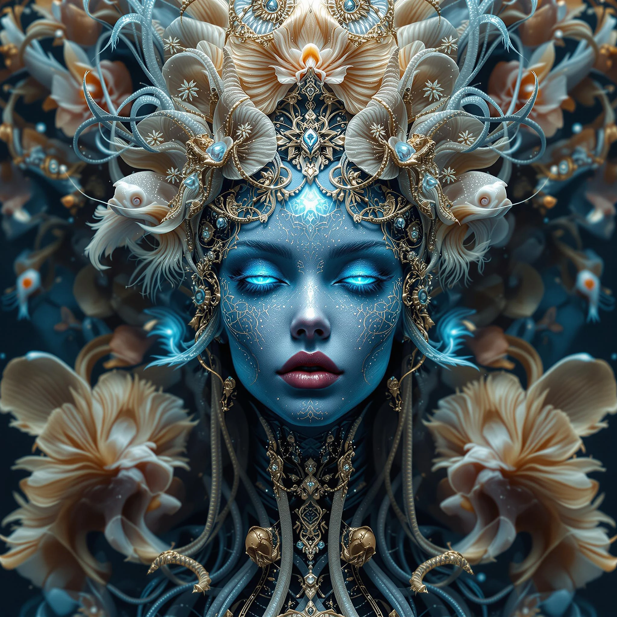 Goddess close-up portrait ribcagel. jellyfish phoenix head, nautilus, orchid, skull, betta fish, bioluminiscent creatures, intricate artwork . octane render, trending on artstation, t symmetrical artwork. cinematic, hyper realism, high detail, octane render, 8k