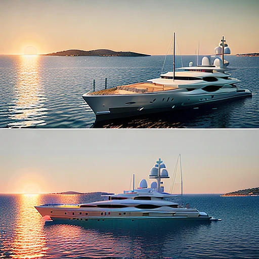 2 two white supersized yachts in St. Tropez sunrise, One yacht has painted title: WORK HARD, another yacht has painted title: WORK HARDER, highly rendered, excellent photography, intricate details, realistic, cinematic lighting, octane rendering, hyper realism