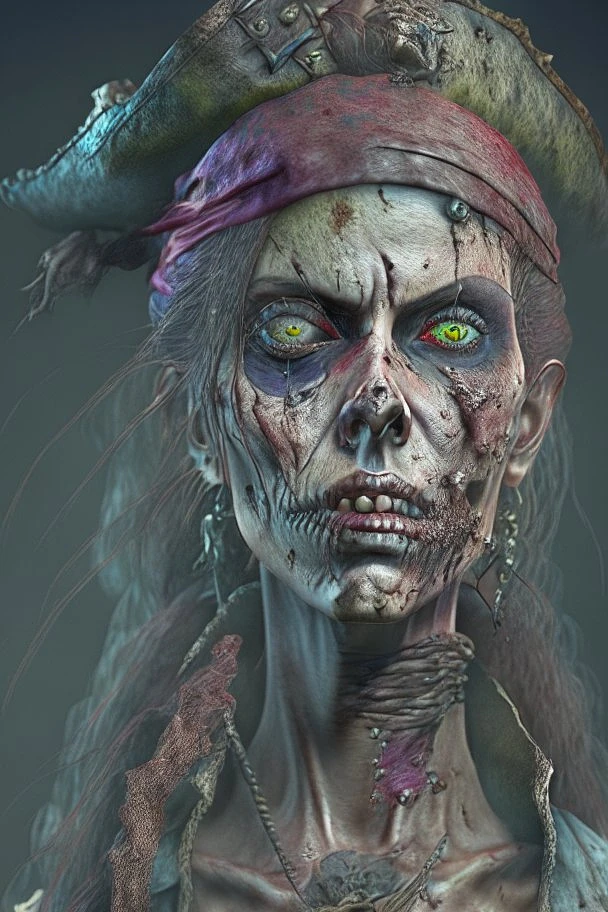 pirate zombie woman, detailed and intricate, hyper realistic, 3D, testp s ar 16:9, v4 --q 0. 5 --v 4