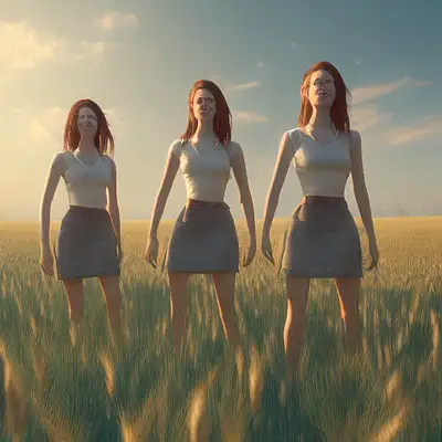 girls with sickles in a wheat field, ultra realistic, unreal engine, 8k, gallery drawing on the theme of farming
