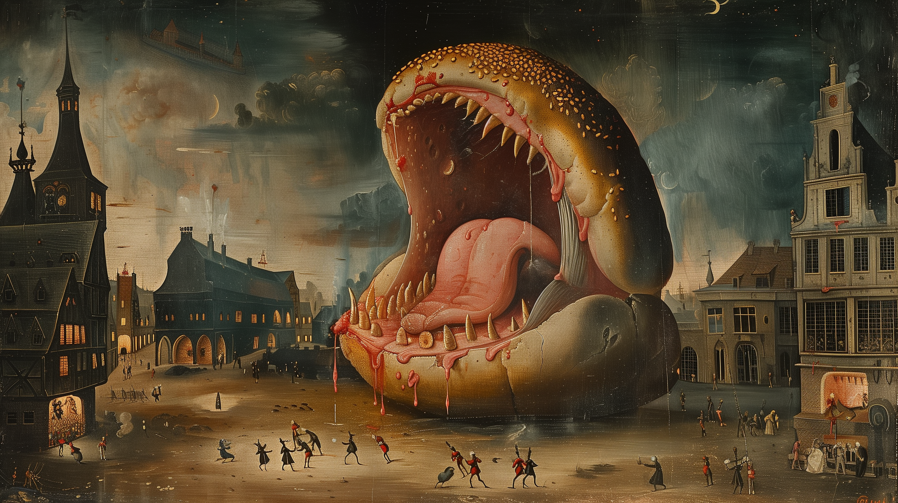 Midjourney prompt: Hieronymus Bosch's painting depicting screaming bu...