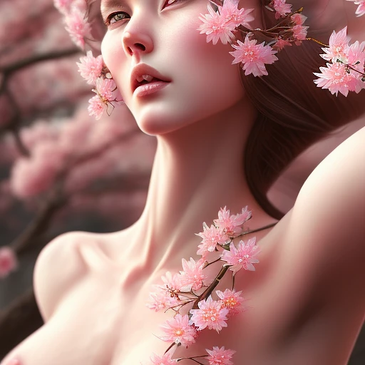 photo of a female , realistic, half body shot, sharp focus, 8 k high definition, insanely detailed, intricate, elegant, art by stanley lau and artgerm, extreme blur cherry blossoms background