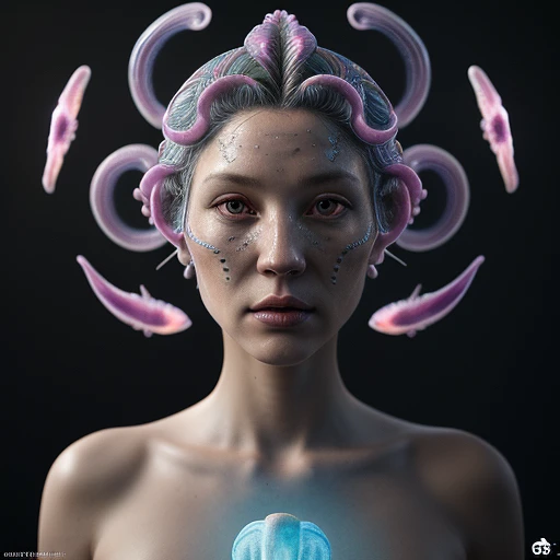 Goddess close-up portrait ribcagel. jellyfish phoenix head, nautilus, orchid, skull, betta fish, bioluminiscent creatures, intricate artwork . octane render, trending on artstation, t symmetrical artwork. cinematic, hyper realism, high detail, octane render, 8k