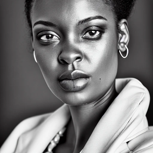 photography, high quality, portrait of black woman, white coat, intricate, beautiful and elegant, highly detailed, face detailed, smooth, sharp focus