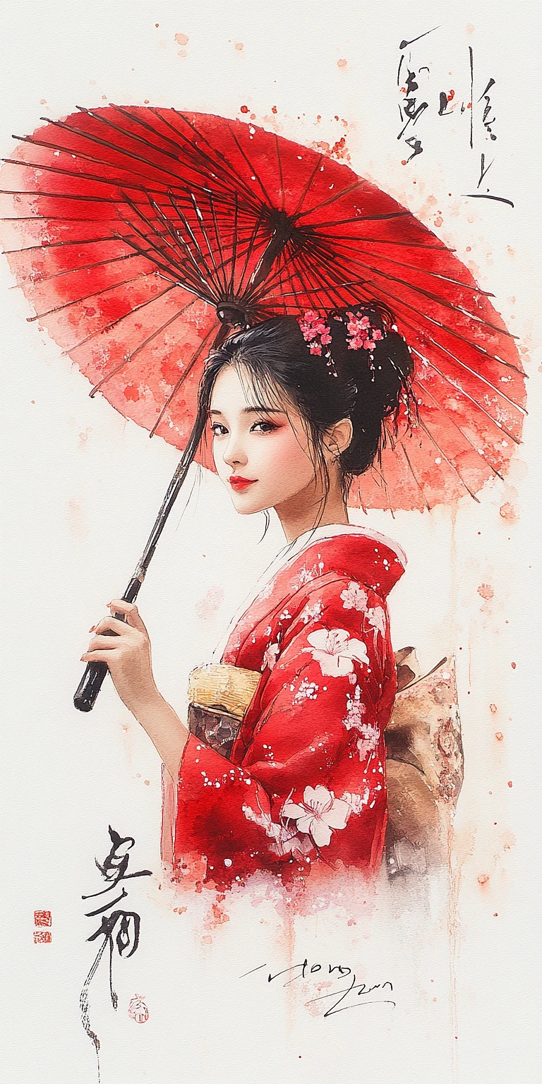 Japanese ink portrait of a woman, in the style of Takashi Murakami --chaos 75 --ar 1:2 --style raw --profile rsy6uq9 --stylize 750