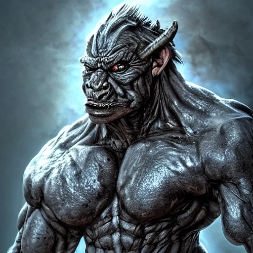 Goldorg, demonic orc from Moria, new leader of the Gundabad, strong muscular body, ugly figure, dirty grey skin, burned wrinkled face, body interlaced with frightening armor, metal coatings crossing head, heavy muscular figure, cinematic shot, detailed, trending on Artstation, dark blueish environment, demonic backlight, unreal engine, 8k, photorealistic, ultra realistic --beta --upbeta --upbeta