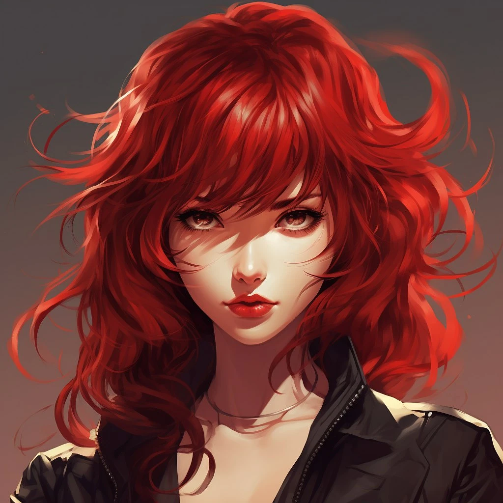 (masterpiece) , (best quality:1.0) , (ultra highres:1.0) , detailed illustration, 8k, anime, 1girl, beautiful anime girl, wearing a red top, pretty face, detailed face, beautiful eyes, detailed eyes, dark red eyes, bright red lips, red lipstick, beautiful stylish hair, highlights in hair, bangs anime style, best quality, vibrant