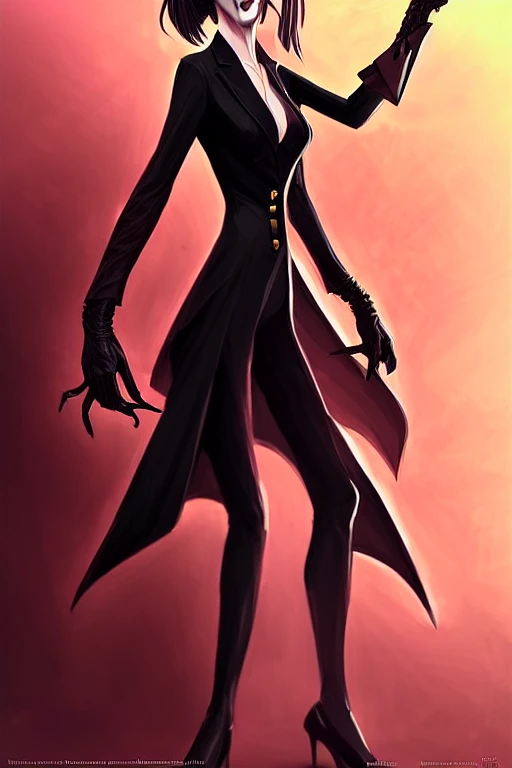 an elegant demon waifu dressed in a smart black suit is offering you a contract to sign, digital art by łukasz piskorz and patrick mcenvoy and michael komarck, intricate, highly detailed, artstation, concept art, smooth, sharp focus
