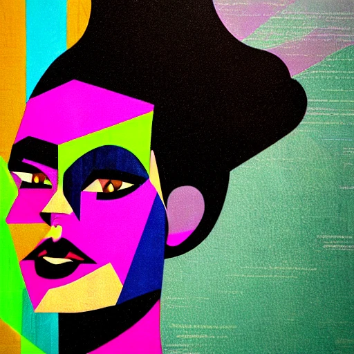 geometric abstract portrait of Bride of Frankenstein, bright vibrant colorful, --aspect 3:4