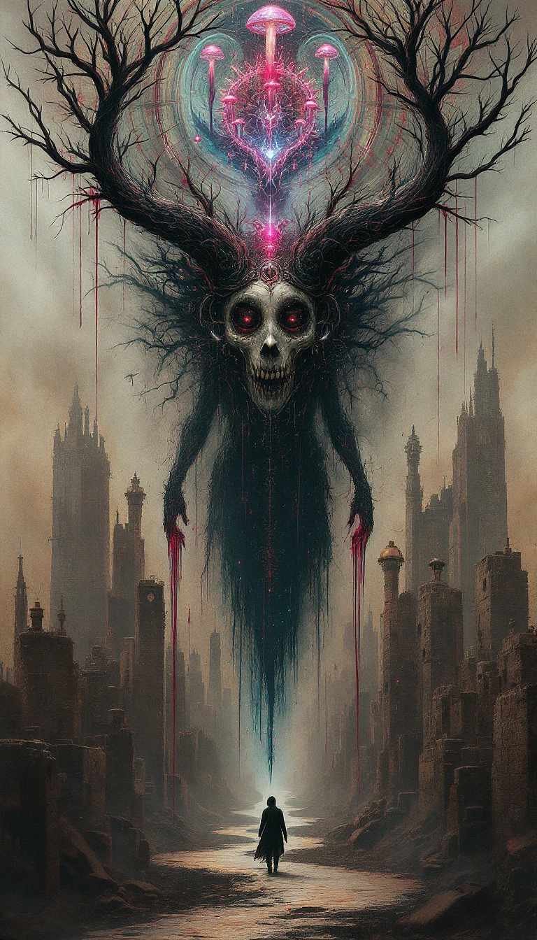 Damnation wicked have, I cant hide their way. You can't hide, evil calls your name, walking, buildings will fall down tripping on magic shrooms, bipolar Zach-effect hologram splash art, surrealistic symbolism, double exposure dreaming dreamscape, lost souls, steampunk mandala, dreamcatcher nightmare hope 3D coagulated textures plasma ruby dewdrops worlds within worlds mirrored infinite reflections of duality. acrylic low key
