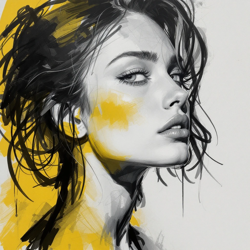 Sketch of a woman, in the style of Richard Avedon, evoking a 1990s aesthetic --chaos 75 --ar 1:2 --style raw --profile rsy6uq9 --stylize 750