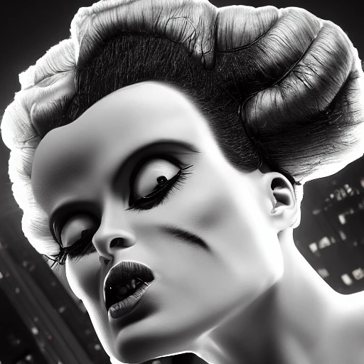 photo of bride of frankenstein, in Tokyo at night . octane render, trending on artstation, t symmetrical artwork. cinematic, hyper realism, high detail, octane render, 8k