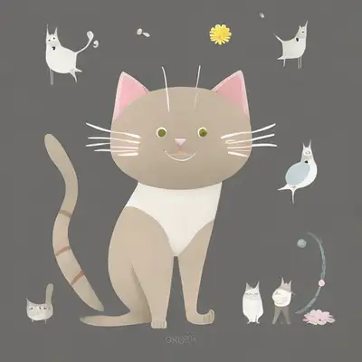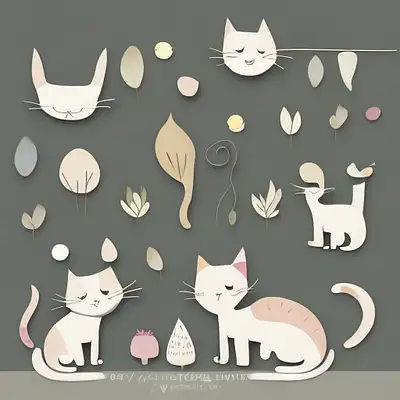 A cute cat clipart, organic forms, in the style of Jon Klassen, desaturated light and airy pastel color palette, nursery art, white background --ar 9:16 --style raw --v 6