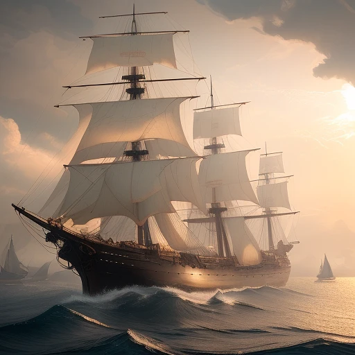 Photo of a ultra realistic sailing ship, dramatic light, pale sunrise, cinematic lighting, battered, low angle, trending on artstation, 4k, hyper realistic, focused, extreme details, unreal engine 5, cinematic, masterpiece, art by studio ghibli, intricate artwork by john william turner